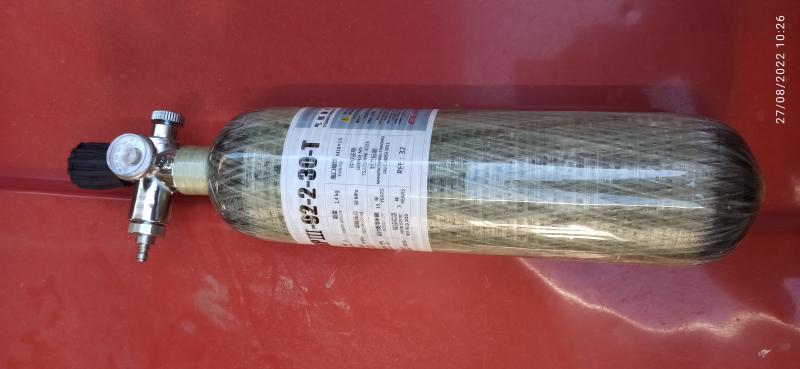 Vendo botella de dos litros de fibra carbono. Esta nueva. Se puede llenar a 300 bares y el grifo que tiene hace la función de estación de carga. 200€