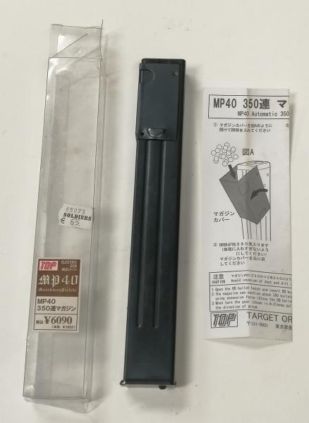 Vendo cargador a estrenar de la marca TOP para la MP40 Maschinen Pistole eléctrica del calibre 6 mm. Nunca usado, se encuentra con el precio original 65 euros en Soldiers y lo vendo por 25 euros y se encuentra en Madrid pero lo envío por NÁCEX (6 euros). Whatsapp 669403324