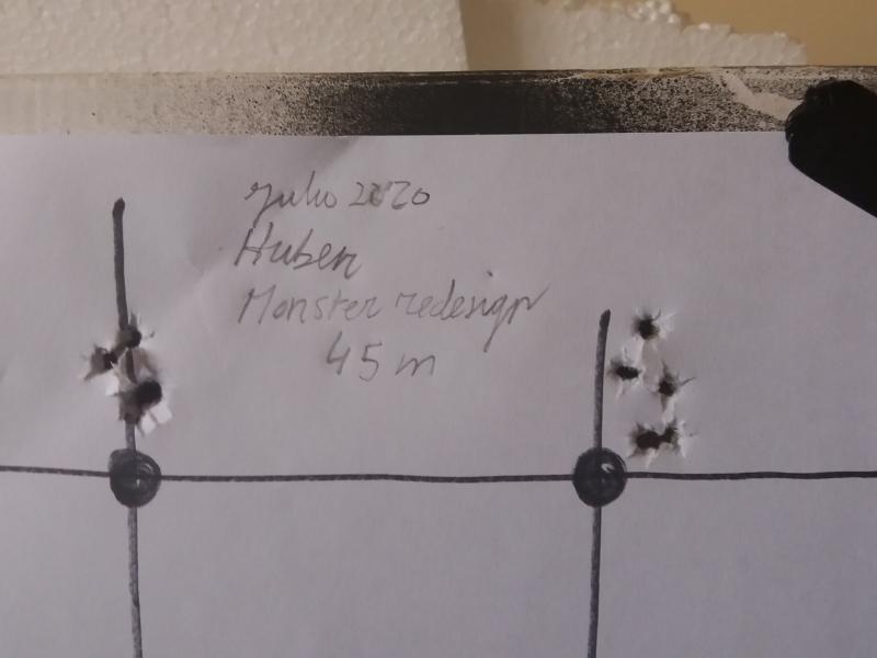 Añado una foto de los grupos que me enseña la carabina a 45 m con rediseñados, grupos de 5 disparos.