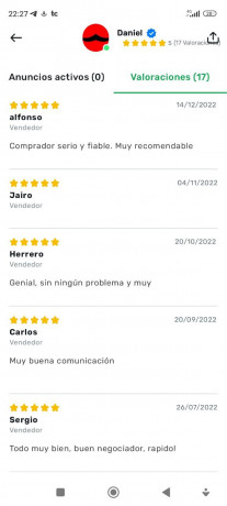 Claro claro... "no te dí confianza", por eso tengo este perfil en Milanuncios con sólo votos positivos. "Mareante", cuando te pago 230 euros directamente en cuanto cerramos el trato, en lugar de regatear o intentar que me lo mandases a contrarrembolso. Por favor.