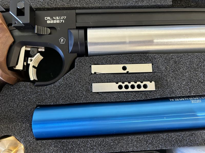 Dos botellas, cargador de 1 disparo y un segundo punto de mira de 3mm.