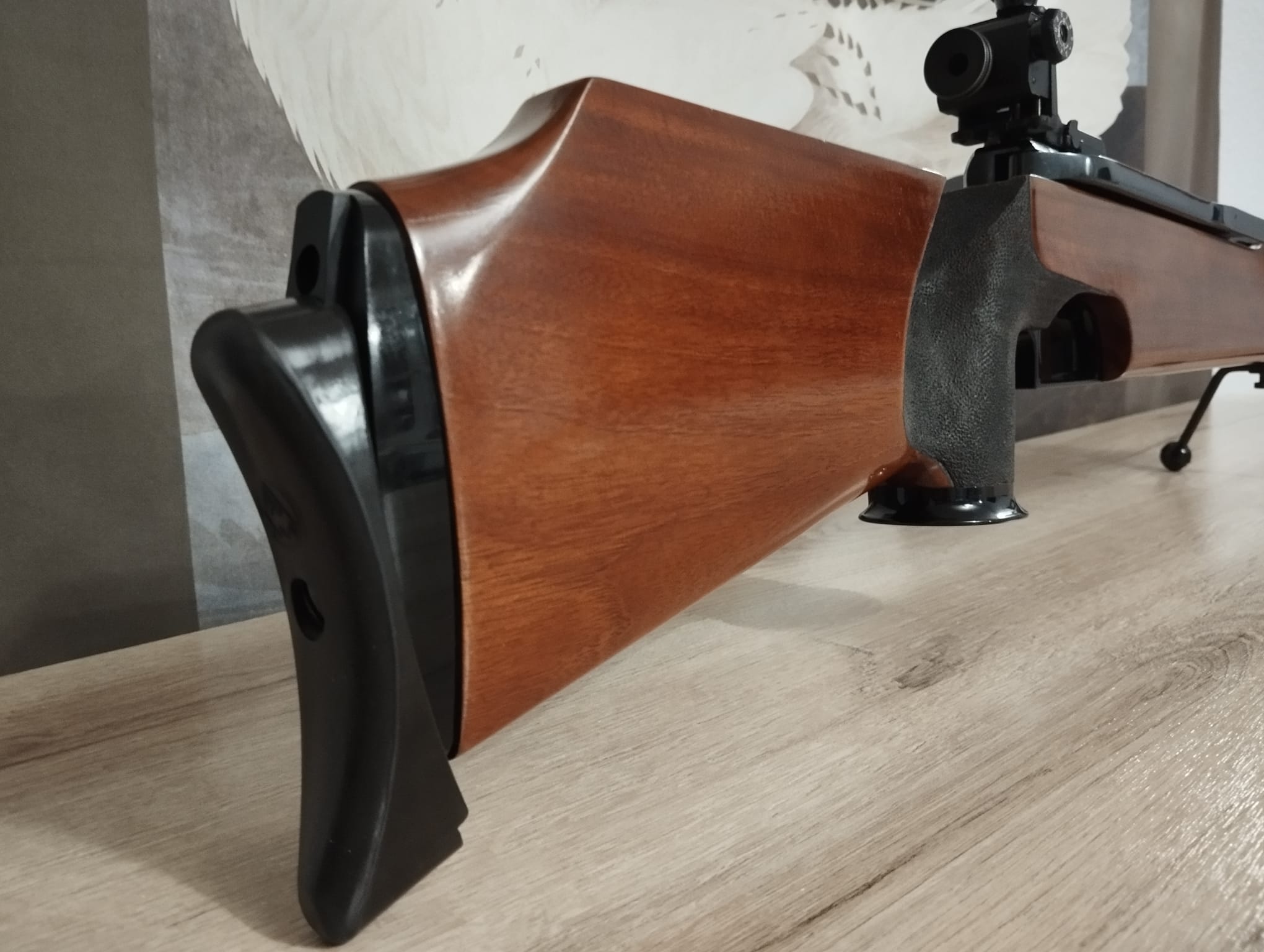 Feinwerkbau 300 S, la carabina se encuentra en muy buen estado con signos de uso, la acción presenta algunas marcas superficiales conservando el negro brillante del pavonado en su práctica totalidad, la culata presenta minimas marcas superficiales, sin grietas, golpes……