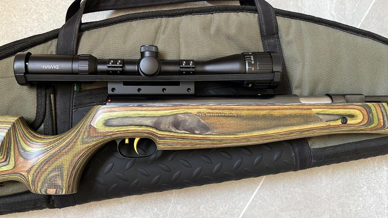 Hw 97 k calibre 4,5 en madera laminada+ visor Hawke Vantage 4-12x40+ monturas Dampa+ funda de calidad Gamo