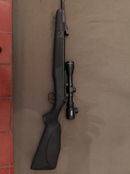 [b]((VENDIDA))[/b]Se Vende DIANA 350 Magnum Panther, una carabina desarrollada con cuerpo de fibra anti-impactos con 24 Julios de potencia y sistema de carga por resorte y Seguro automático, Incorpora gatillo ajustable, cantonera de goma, miras abiertas y Raíl de 11 mm. Mas de 280 m/s. No Cambios. Visor 3x9-40 y Anillas +35€. Portes si los hubiera por parte del comprador. Carabina no usada por exceso de potencia. Precio 200€. Ciudad Real