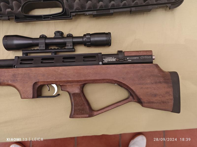Se Vende Carabina Bullpup Cometa Orion Cal. 5,5 regulada, Madera 600€. No Cambios, Se encuentra en Ciudad Real, portes si los hubiera a cargo del comprador. Se regala cargador extra, Moderador Lobo, Maletín Transporte. Visor no incluido es un Bushnell 3-9x40 (no Chino) precio con anillas 50€. Se dispone de botella 10 L. cargada con latiguillo 150€ (No se envía Solo recogida)