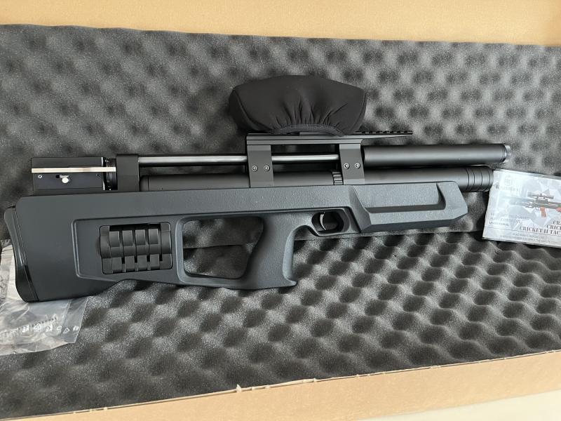 Unidad exclusiva de Kalibrgun Cricket compact plb. Modelo extra corto de solo 62 cm fabricada en República Checa a la carta en septiembre del año pasado. Lleva rosca 1/2 unf para moderador extra. No la he usado apenas, impecable. No incluye el visor de la imagen.