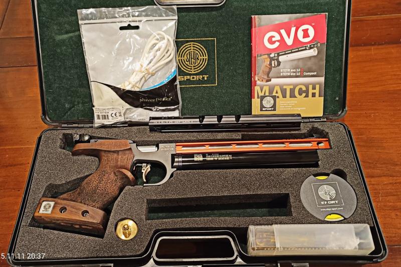Vendo pistola Steyr evo LP10 E, primer propietario, con su maletin, contrapesos originales, herramientas e instrucciones. la pistola lleva cacha M, regalo otra cacha tamaño L, un cubre cañon naranja, y una segunda botella no original (Prelutec). Pistola comprada en Octubre 2024. Pido 2.000 euros, envio incluido, se encuentra en Alicante.