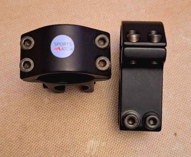 Hola, vendo anillas SportsMatch HST46C para visores de 1" (25,4mm) y armas con carril de 11mm o cola de milano. Anillas de aluminio con 2 tornillos de fijación y diseño especial para ver las miras abiertas por debajo del visor. Altura: Altas.