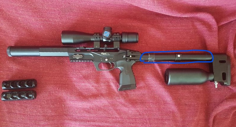 edgun sola con un cañon y botella grande mas manometro y culatin para ponerla original mas bipode y funda 1400 e
