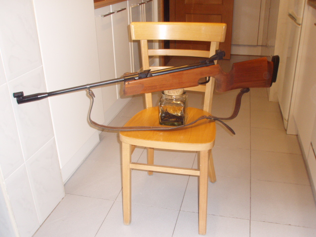Una excepcional carabina clásica de competición. Arma en un estado excelente, donde se nota el buen y cariñoso uso que se le ha dado, dotada de Diopter original de la misma marca y cantonera regulable, no así la carrillera. Carga por brazo lateral, como ya sabeis. Del grupo disparador no se puede decir nada que no se sepa, sencillamente perfecto. Logicamente calibre 4,5