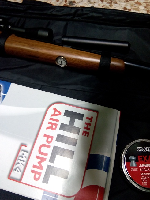 1º una bam 50 , del cal. 5,5 con varios transfer para cambiar potencias ( ahora a 24 j) , regulador lobo instalado,manometro wika,visor 3-9x40 mildot e iluminado,monturas, funda tactical, silenciador hatsan y bomba hill mk4 nueva a estrenar