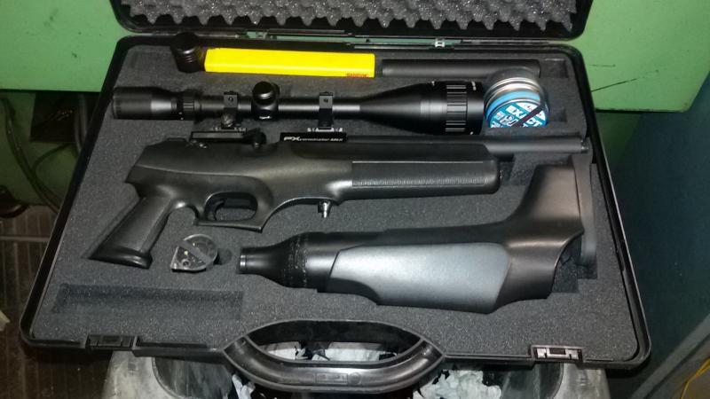 lleva montado un regulador original Fx de la royale gracias a lo cual saca unos 180 disparos, para montarlo hubo que cambiar el tubo que lleva el aire del deposito trasero a la carabina y cambiar de posición el manómetro y el conector de llenado, no se ha realizado ninguna modificación irreversible, así que se puede devolver a origen poniendo las piezas originales que van en la cajita amarilla.