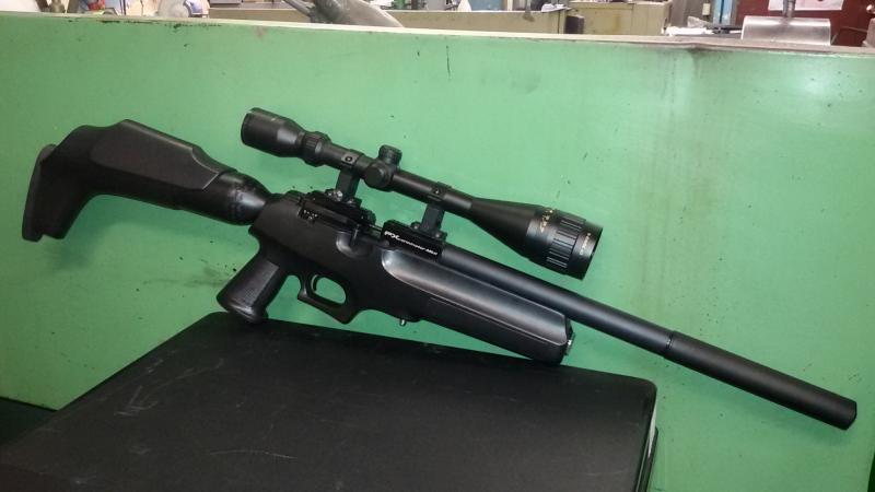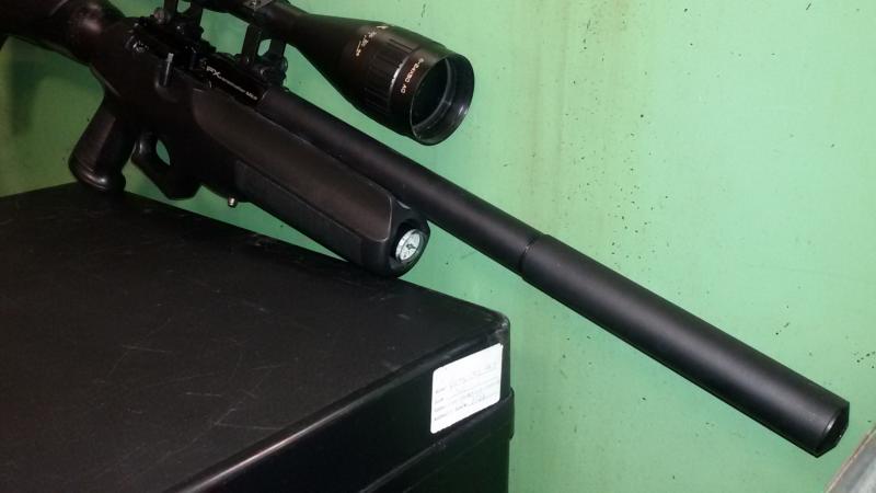 También se modifico la rosca de un moderador wehirrauch para poder atornillarlo en la rosca de la carabina, queda excepcionalmente muda.