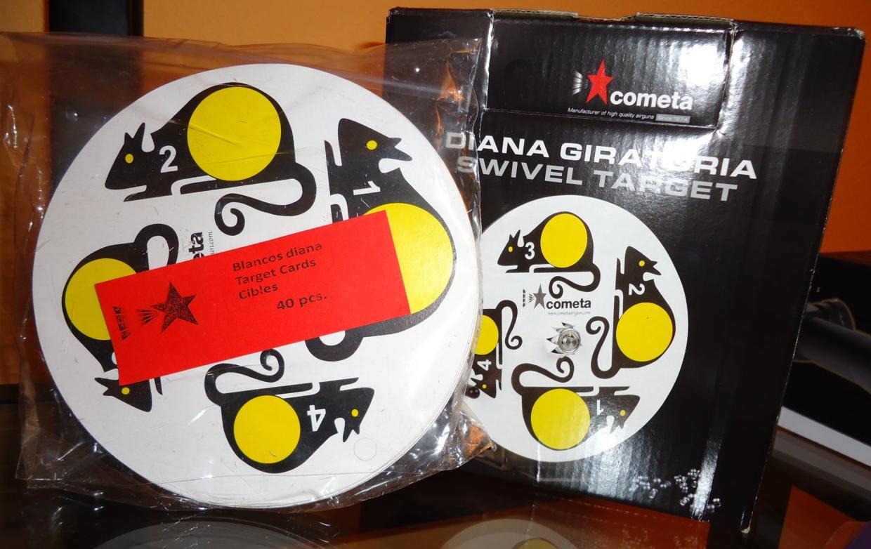 Diana giratoria “Cometa”. Se carga manualmente de forma sencilla. Tiene 4 estaciones de diferentes medidas (ayuda para entrenar en field target y en precisión). Una vez cargada va girando de modo automático.
