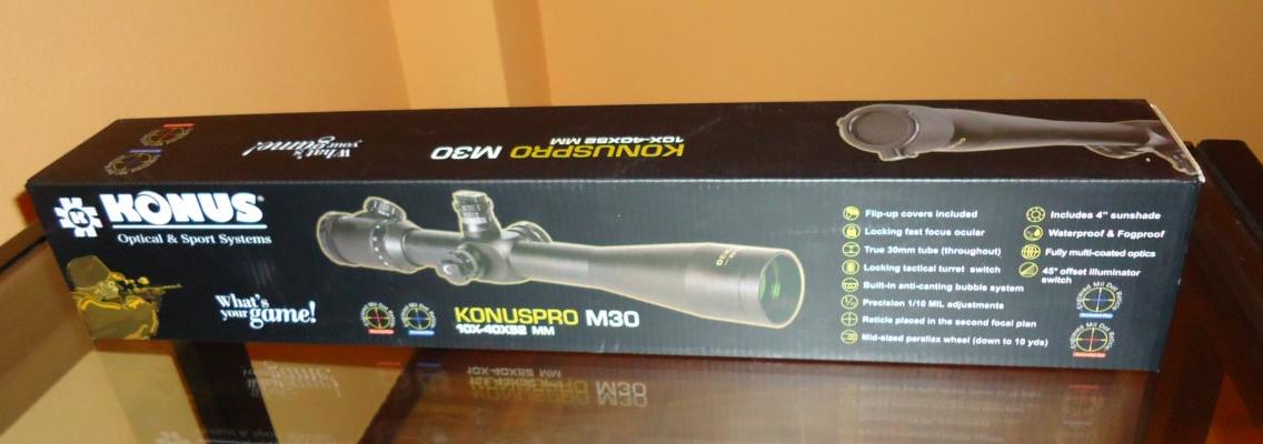 Visor Konus Konuspro M-30 10-40x52. MilDot. Con parasol, tapas abatibles y burbuja de nivel interna. Peso 910 gr.