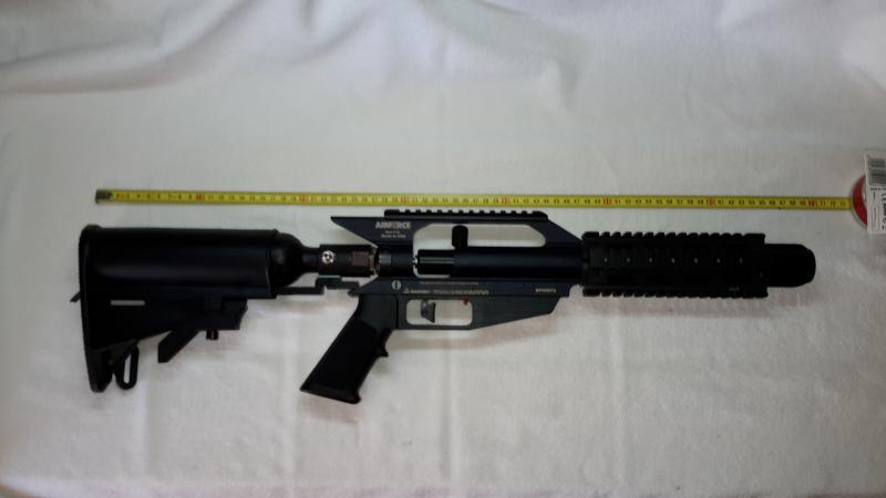 Se trata de un AirForce Pistol en cal. 6,35 y que imita a un M4. Lleva: