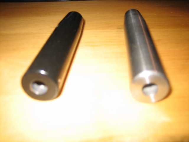 Vendo estas dos bocachas para cañón de 15mm . Se sujetan con un prisionero. La negra mide 100mm y tiene 20mm de diámetro exterior. La de acero pulido 111 mm y 20mm de diámetro exterior. pesan unos 100 Grs. aprox.