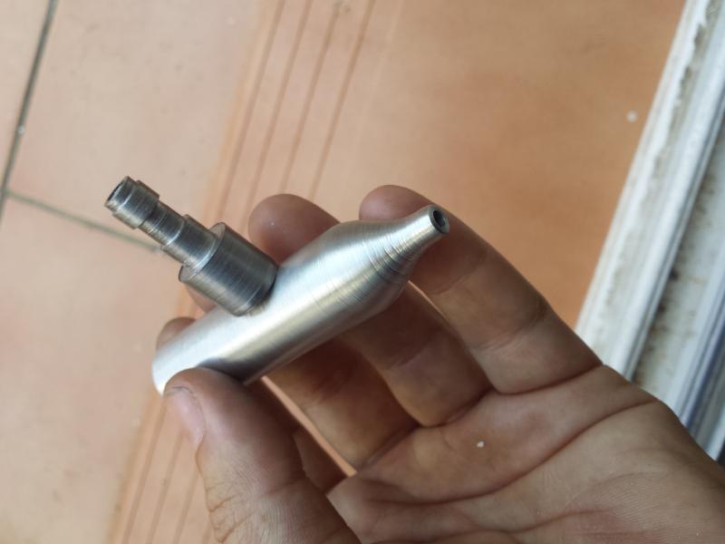 Pues vendo este accesorio para comprobar si una pistola o carabina de co2 tiene fugas hecho en aluminio macizo imitando la forma de la botella y con conexión foxter rápido macho.