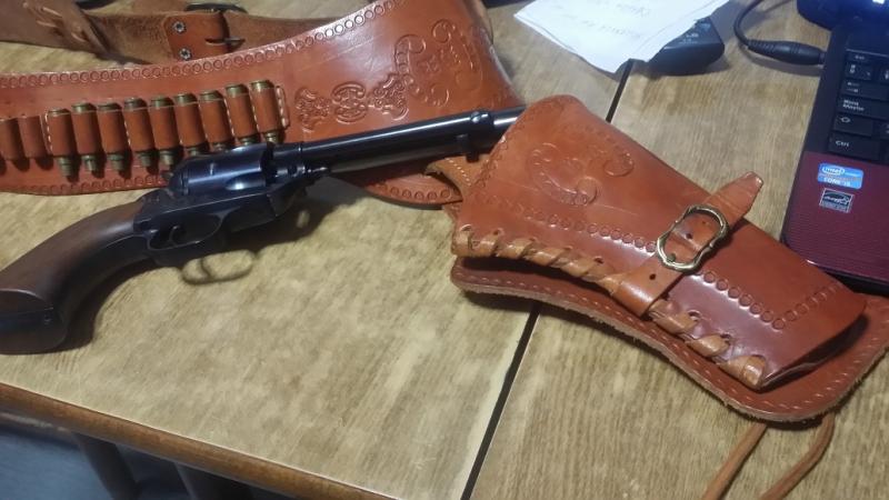 Revolver sistema bak con cinto de piel y 9 balas sin Bomba 350€