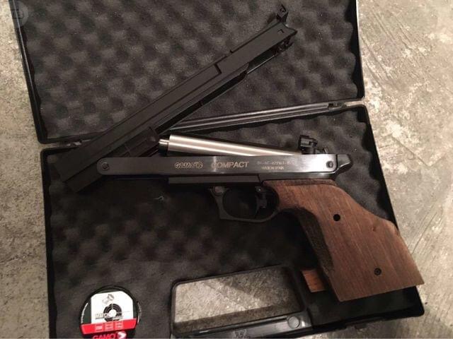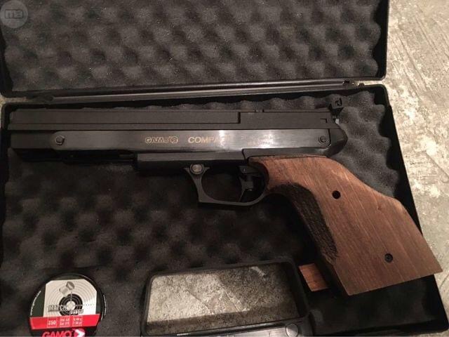 Vendo pistola Gamo Compact cal. 4,5 con 1 año y 3 meses, aún en garantía comprada en blackrecon. El motivo de la venta es que ahora tengo una Steyr LP10 y ya no la uso. No tiene muchos tiros, tiene cambiado el muelle del gatillo para suavizarlo. Se puede ver y probar en Navarra. Viene en su caja original y con los perdigones que traía.