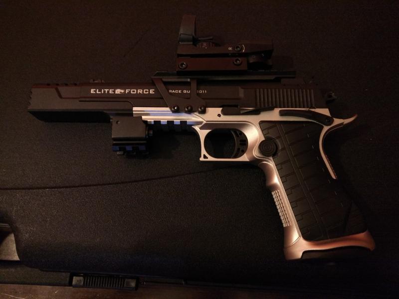 VENDIDA.Vendo pistola de airsoft sin uso UMAREX ELITE FORCE RACE GUN blow back con minilaser y punto rojo.es de co2 y perfecta para iniciarse en AIPSC. su precio 90 eur .adjunto caja original.