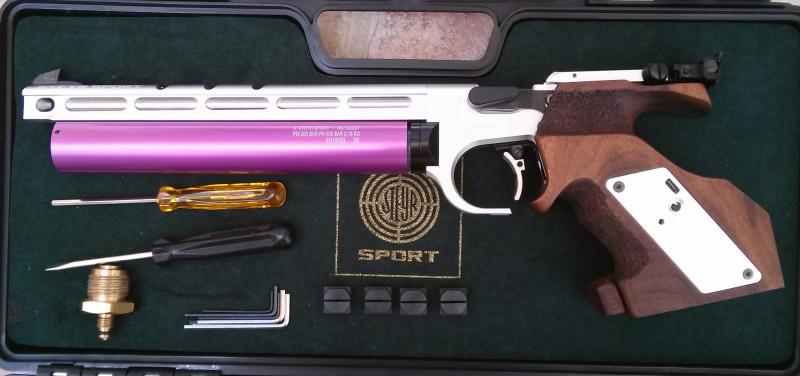 Pistola de Marzo 2016. Incluye herramientas, manual, racor de carga, dos botellas en rosa.