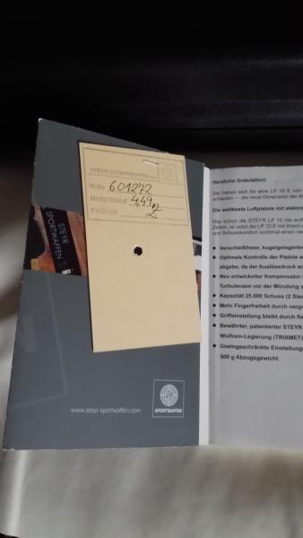 Re: VENDIDA pistola STEYR LP 10E (electronica)