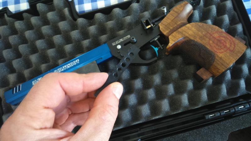 Pistola para tiro a 10 metros, con botellines de CO2 de 12 gramos.