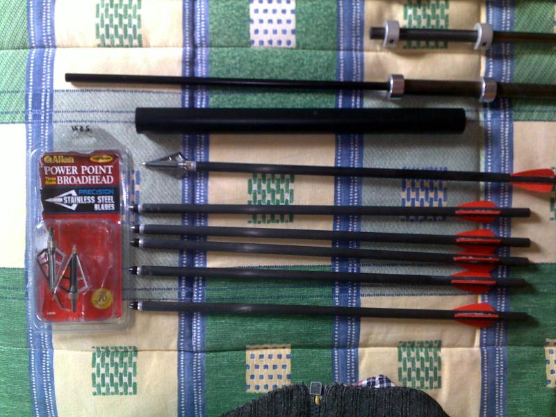 cuatro cañones. 6,35, .22 corto, .22 largo y cañón para flechas impresionante, seis flechas de carbono + tres puntas de caza