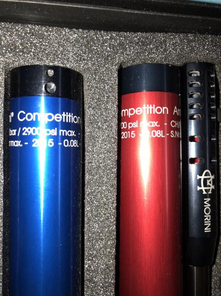 Buenas a tod@s, vendo mi MORINI 162EI, el arma fue comprada a CHANO en enero de 2016, tiene disparador electrónico alimentado por dos baterías AAA, cacha de talla M tocada como se puede ver en la foto, dos botellas con año de timbrado 2015, viene con todas las herramientas, racor de carga y roscado de descarga, libro de instrucciones con la tarjeta de agrupación de cañón, a mayores un compensador de boca bicolor como podéis ver en la foto, todo junto y puesto en tu casa por 1350 € negociables, un precio ajustado teniendo en cuenta el tiempo del arma, su uso y teniendo en cuenta que su precio original de venta como sabéis es de 1750 € sumándole a eso el precio del compensador que es de 120 €, animaros, es un arma espectacular, la vendo porque he adquirido una compact por problemas musculares.