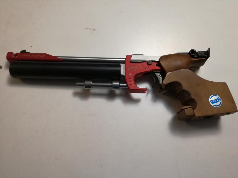 Una de las mejores pistolas de aire para competicion. En perfecto estado de funcionamiento y estetico. Empuñadura talla mediana sin retocar, solo tiene pegado un trozito de corcho en el apoyo por que tengo la mano pequeña, que se puede re-