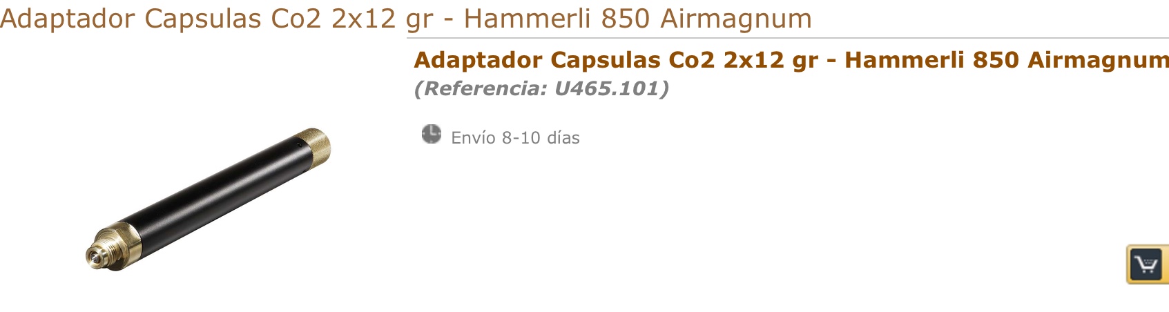 S-THUNDER CHARGING CYLINDER FOR 2 X 12G CO2 SHELLS, página de Aceros de Hispania