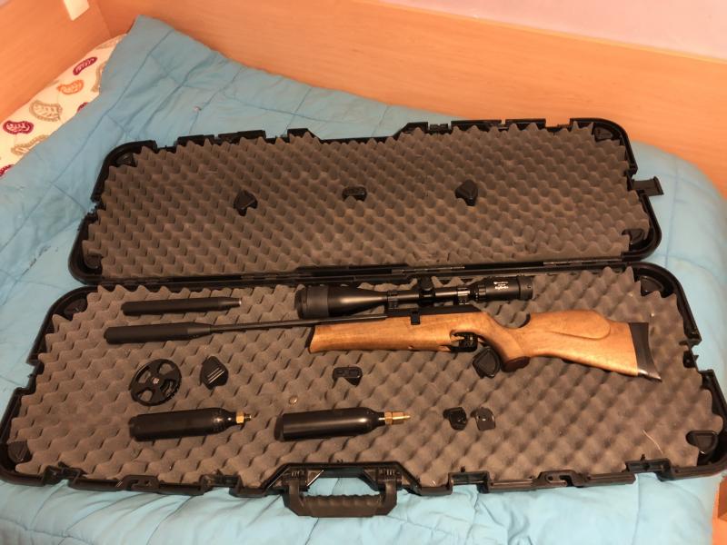 Vendo Carabina BSA superten MK-3 con visor NIKKO STIRLING NIGTHTEATER 10-50x60. Dos depósitos, dos silenciadores, uno de ellos no es del fabricante y dos cargadores. La carabina es de 5,5. Incluyó la maleta de transporte. Estación de carga FX y escuba de 300bares con carga realizada a principios de año al igual que la revisión “No ha sido usada desde entonces, esta completamente llena”. Ahora le toca prueba de estanquiedad.