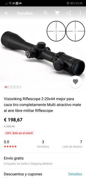 Hola,compañeros pongo a la venta este visor que me regalo mi mujer,es nuevo a entrenar y lo de venderlo es por que es muy grande para el uso que le quiero dar y me viene muy grande,os pongo un enlace para que veáis características y precio. El precio puesto en casa seria de 270€ esta a estrenar y cuesta casi 400€,si alguien le interesa pongo mi teléfono 676761555.Este es el enlace https://s.aliexpress.com/UvqqqARn?fromSns=Gmail y os paso unas fotos,en 20 minutos me las subirá el compañero ( vayoy) que se ha brindado y se lo agradezco de verdad un saludo a todos.