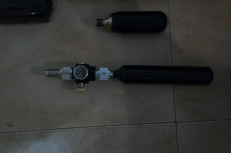 Es mucho mas sencillo, solo es necesario el adaptador, el regulador de paintball y el deposito (de fwb u otra marca) modificado para roscar el regulador.