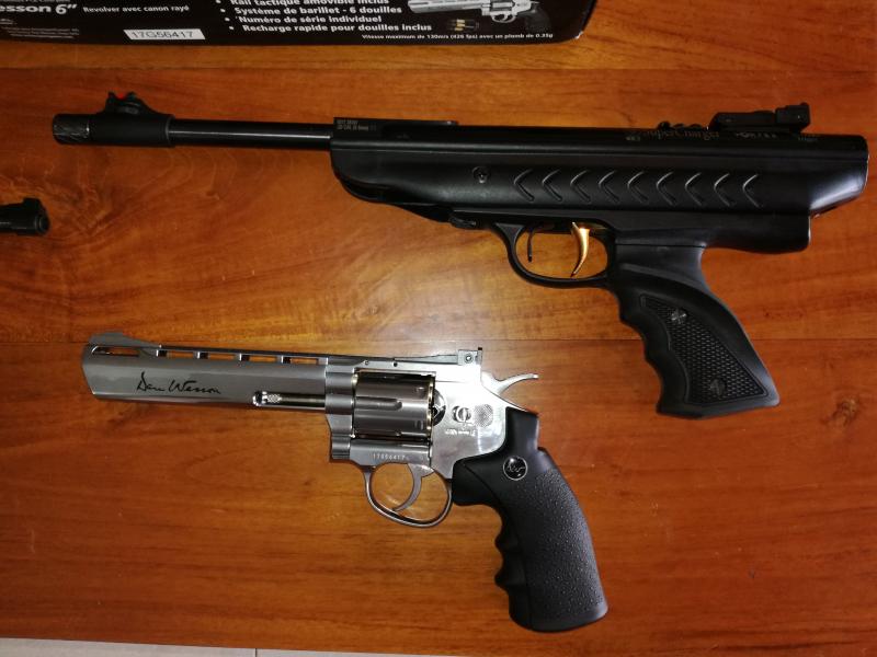 Vendo dos pistolas de aire comprimido,una es la hatsan modelo 25 supercharges vortex,no es de muelle es de piston gas,calibre 5.5 una bestia,es la mas potente en 5.5,solo e disparado con ella en tres ocasiones,esta como recien comprada,la vendo por 80 euros.la otra es un revolver dan weson de 6 pulgadas,calibre 4.5 de co2 es el modelo con cañon estriado,dispara plomos,me costo 151 euros,lo vendo por 90 euros, apenas sin uso,solo dos botallas de co2,sin un rasguño,como recien comprado,