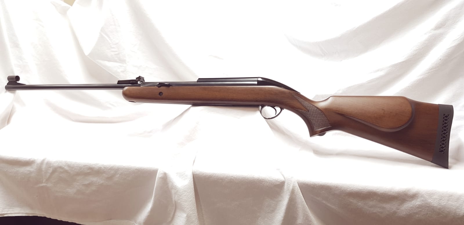 Elegante y estilizada, gracias al sistema de carga bajo el pasamanos, esta unidad esta inmaculada. Jamás se le ha puesto visor y no habrá hecho mas allá de una docena de disparos. La recogí de la vitrina de un coleccionista hace algunos años y desde entonces ha estado en mi vitrina.