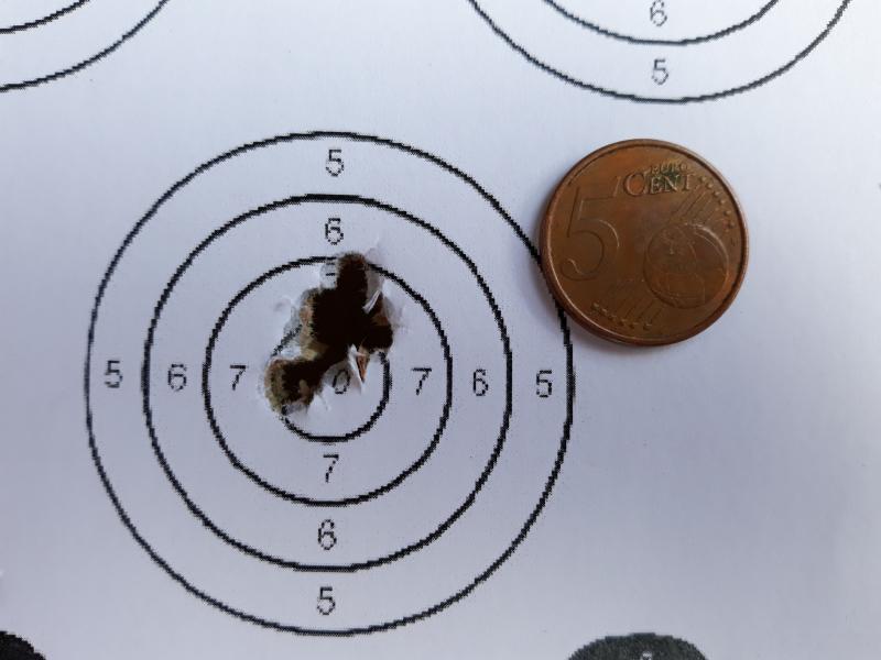 un cargador a 30m ( con un gatillazo gordo ) y cinco disparos a cada diana a 50m, ( los de la dcha son de calentamiento ).