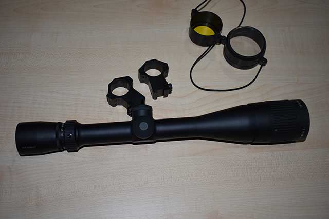 Se encuentra en perfecto estado, sólo ha estado montado en carabina PCP. No tiene ninguna marca de monturas ni golpes, como puede verse en las fotos. Paralaje frontal, ajustable desde 15 metros. Adjunto con el visor un juego de monturas de la marca Leapers, para rail de 11mm.