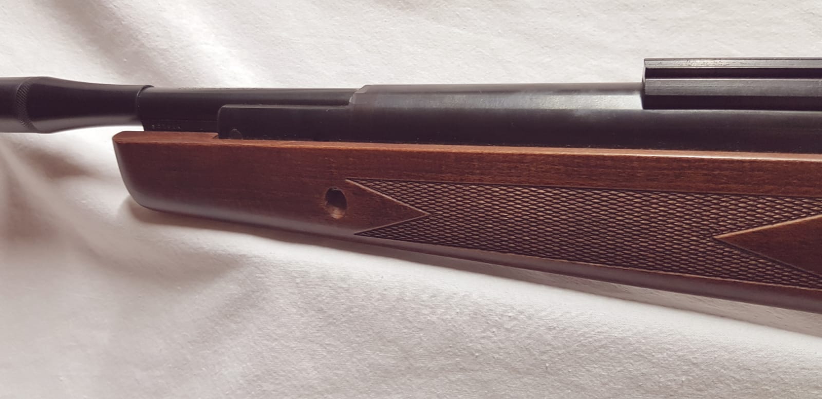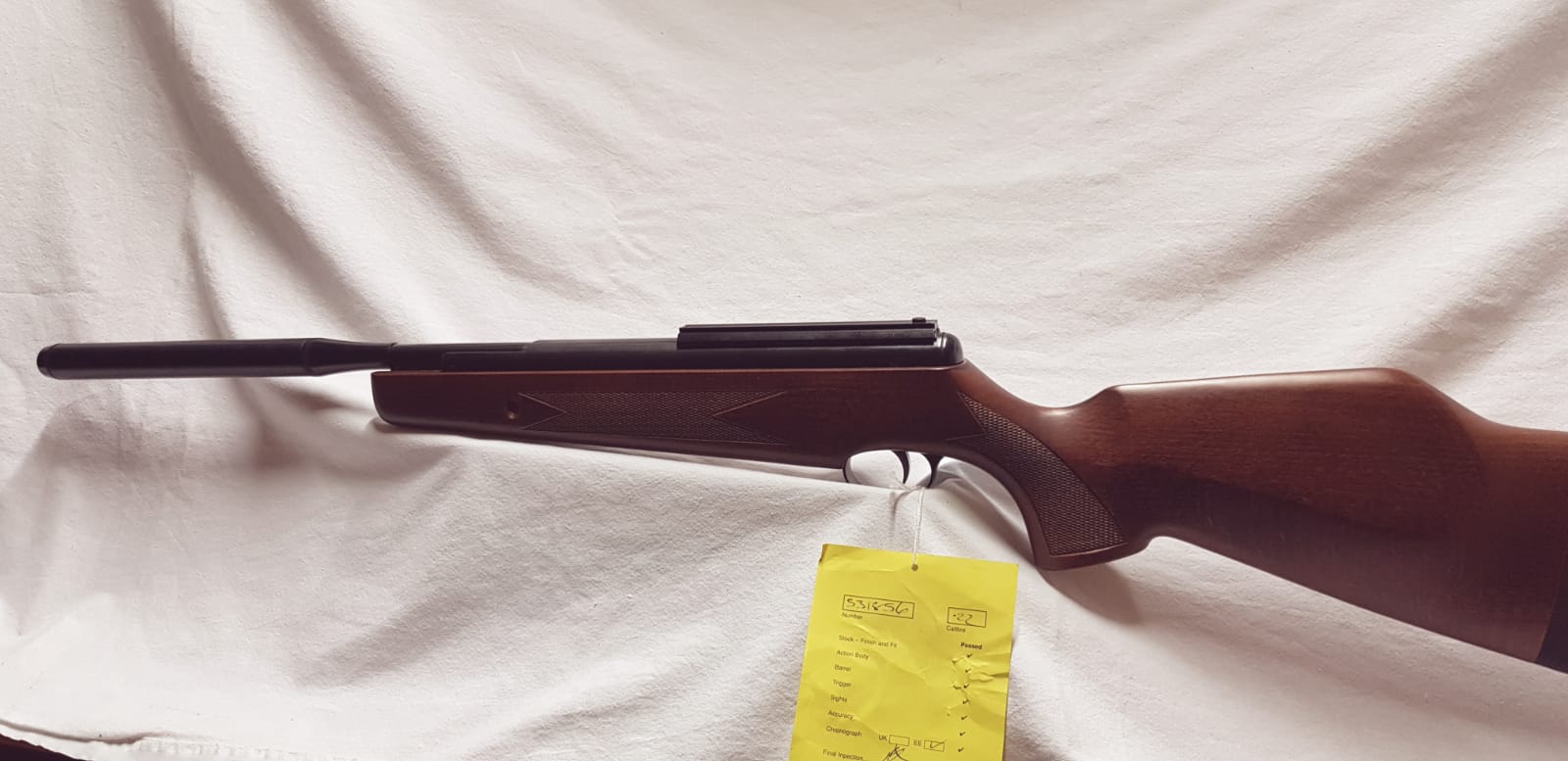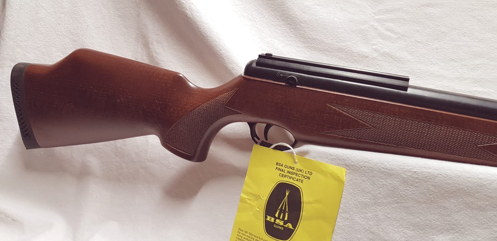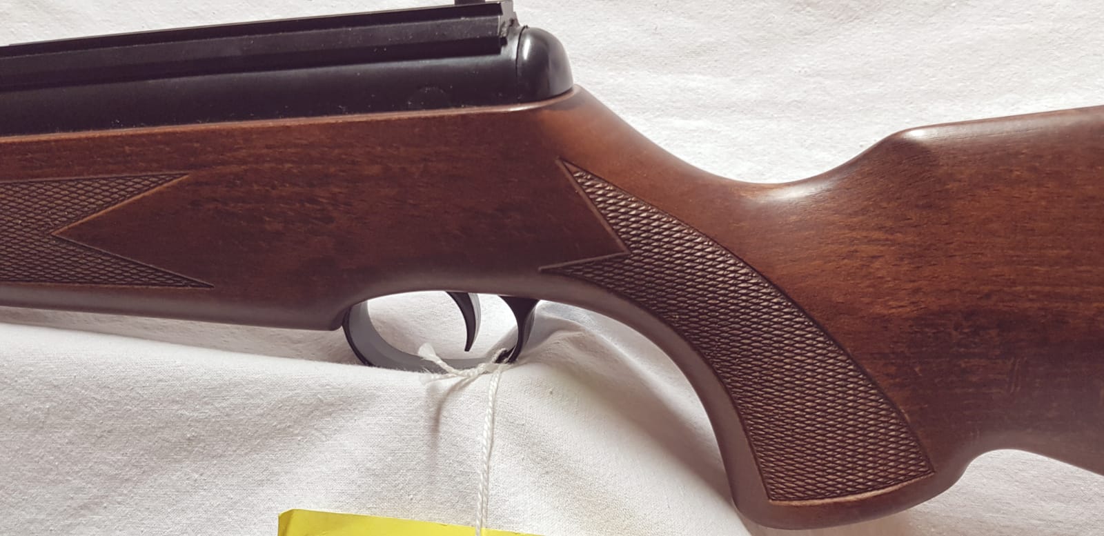 Es una BSA Lightning XL a la que, como podéis ver, aún le cuelga la etiqueta de la tienda. No se cuantos disparos habrá hecho, pero no creo que mas de dos o tres. No se le ha puesto mira telescópica. Estado inmaculado.