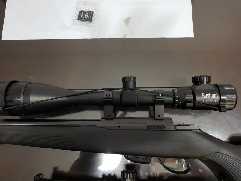 Lamento darte malas noticias, pero, ese visor Bushnell, no es autentico, es una imitación china en toda regla, que puedes comprar en Aliexpress desde poco mas de 30 €, anillas incluidas. El original, es de objetivo de 40 mm, y no tiene retícula iluminada........