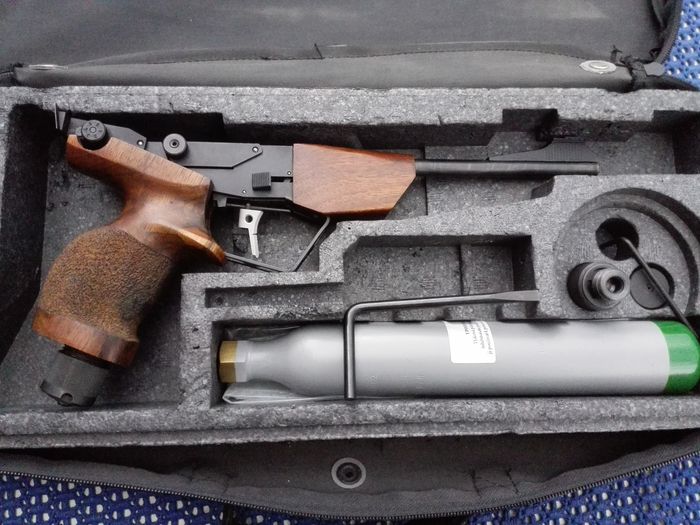 Muy precisa, ideal para iniciarse en el tiro deportivo: equipada con contrapesos, alza y gatillo regulable, empuñadura anatómica...