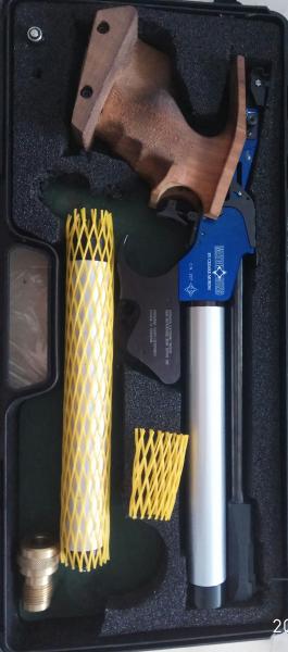 Pistola de aire, dos cartuchos que caducan en el 2021, cacha M sin tocar. Incluye contrapesos, llaves Allen, adaptador de carga, pila nueva de repuesto y caja de transporte de una Steyr. Estado excelente, se encuentra en Valencia. Me la quito por lesión en codo que va para largo y mejor que alguien la disfrute a tenerla en un cajón.