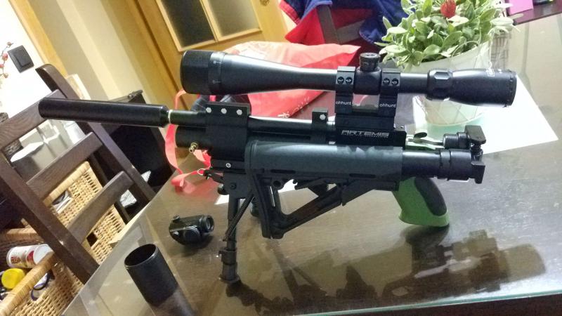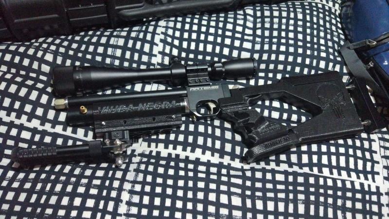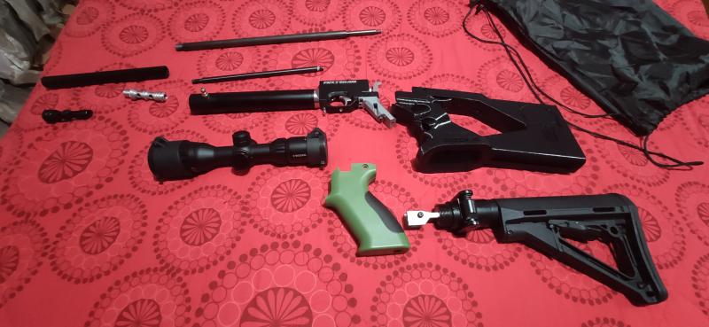 Bueno para financiar proyecto (un visor 10-50 x56) pongo a la venta este juguete que apenas uso, es una pp700 de el 5.5 con dos culatas, una plegable echa con piezas cortadas a láser en acero inoxidable y piezas de air soft, otra que la convierte en una mini carabina o mini bullpup, como se quiera interpretar. También se incluye el cañon original de el 5.5 y otro de cometa de el mismo calibre mecanizado por lobo que se cambia sin herramientas.