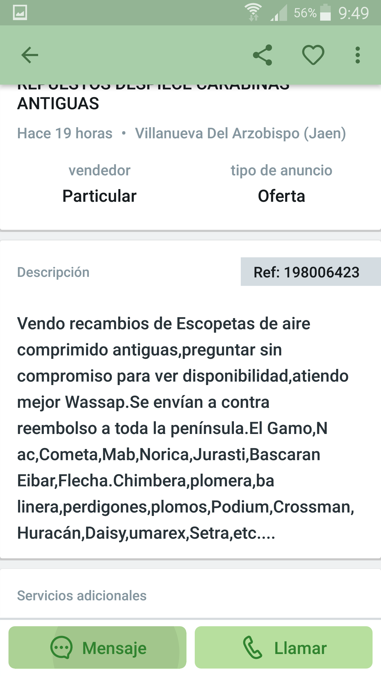 Hola ! . En milanuncios , vende un particular o armería , todo tipo de repuestos y como preguntar de momento es gratis ......mira las fotos . Saludos ! POR FAVOR SI HAY ALGUIEN MÁS INTERESADO RESPETEN LA VEZ . Saludos !