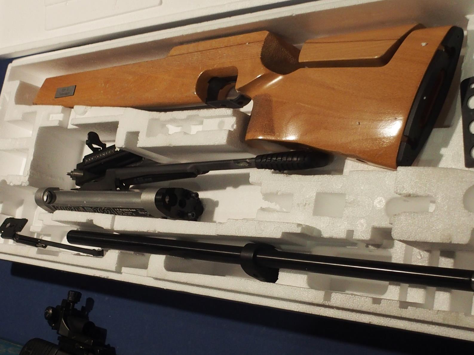 Se trata de una carabina superconocida en el mundo de la competicion a 10 metros. Se encuentra en un estado excepcional tanto de potencia de tiro como de precisión. La oferta contiene: