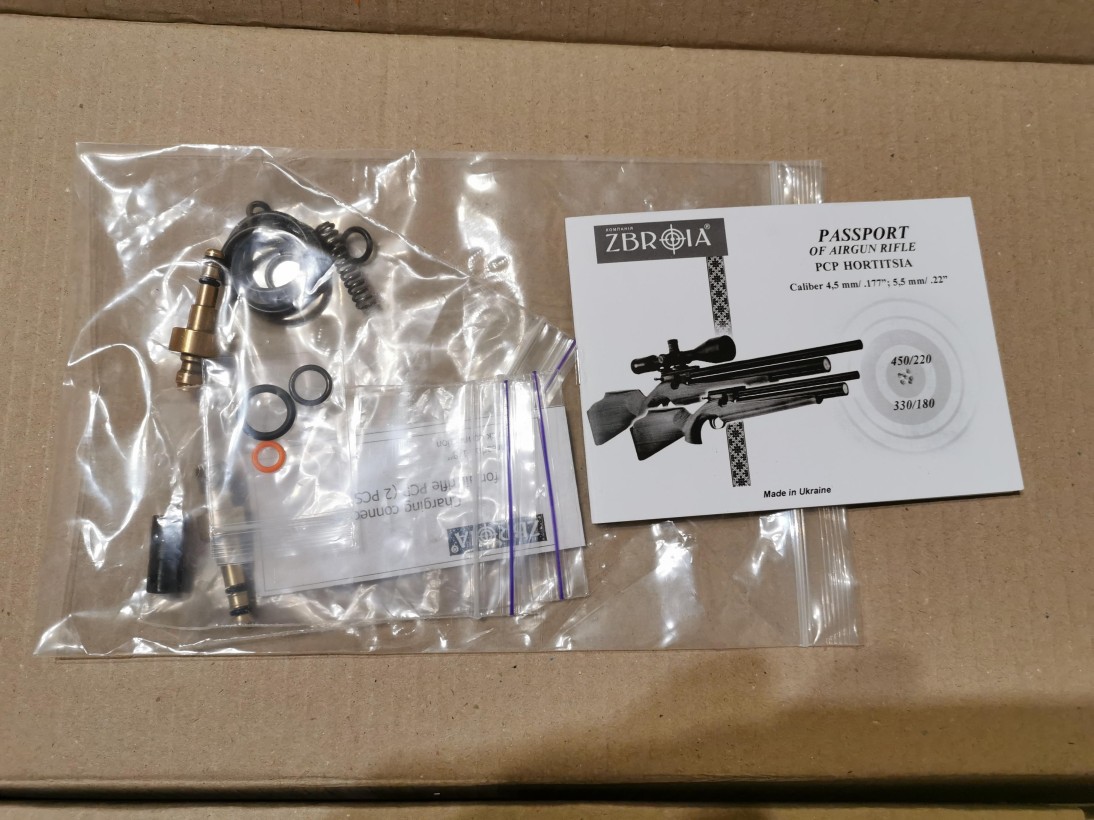La carabina viene con dos cargadores de 10 balines, juego de toricas, las piezas de recambio que venian con ella, y un par de conexiones para su carga.