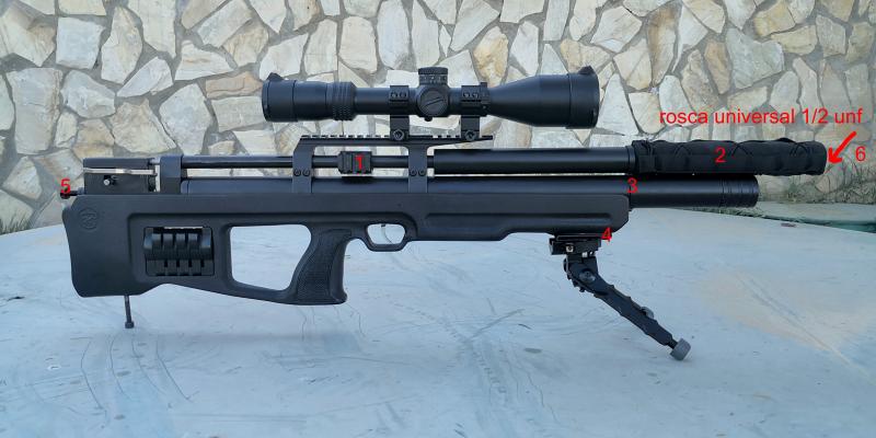 Vendo carabina bullpup kalibrgun cricket 6. 35mm con muchas mejoras como cañón pulido, anulación de las vibraciones en el cañón, rosca universal 1/2 unf para poner silenciador por si queré dejar muda, pintura de la culata alta resistencia antigolpes y rayaduras, resto de las mejoras marcadas en rojo en las fotos precisión excepcional en calibre tan grande !!