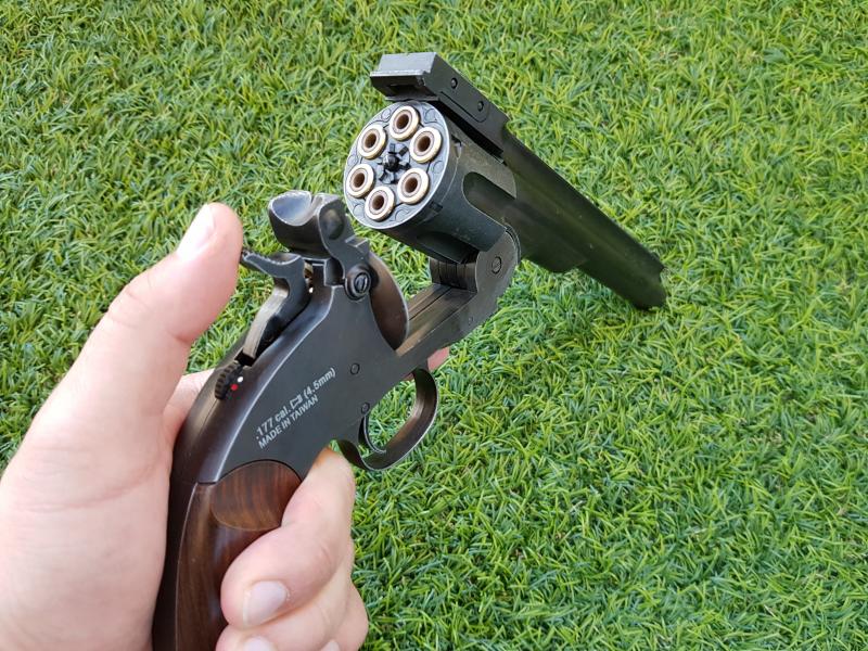 Pongo a la venta este revolver de ASG Schofield de 6" de perdigones de 4,5mm y un pack de otras 6 balas adicionales.