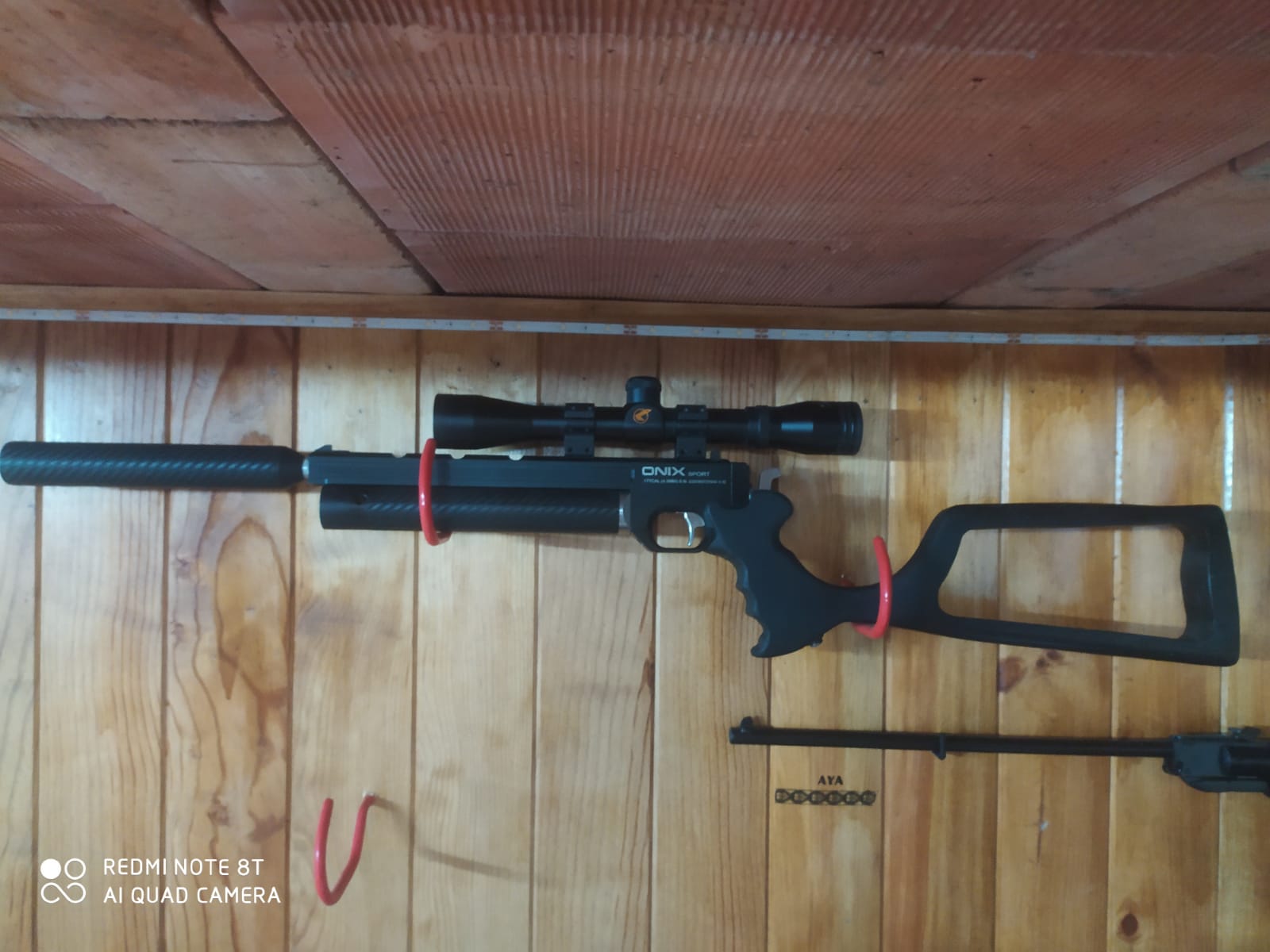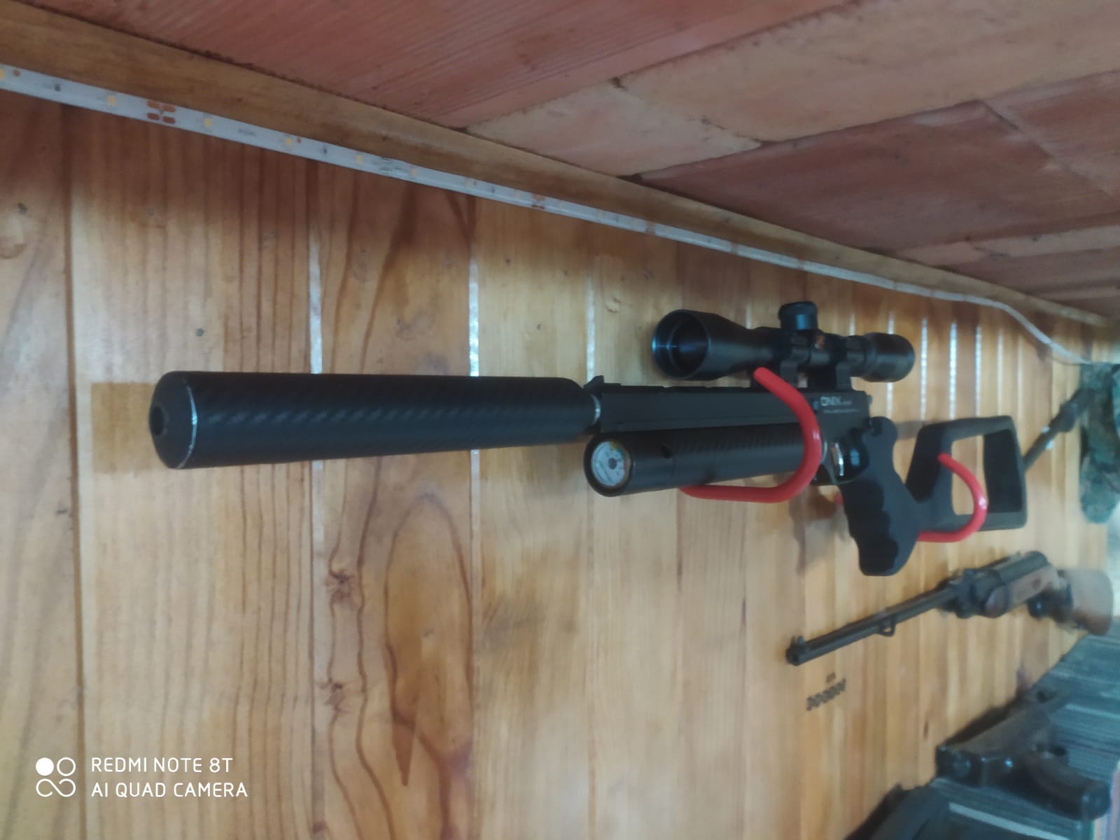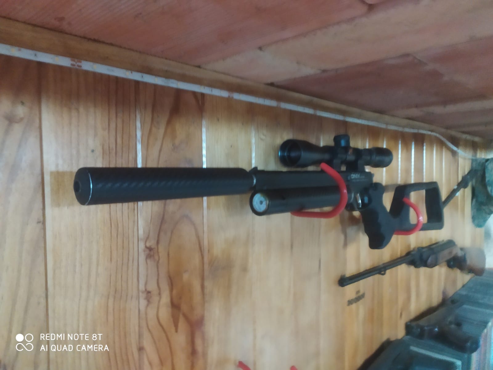 UN AMIGO VENDE pistola onix sport 4,5 con acabado carbono, silenciador, acople para el mismo en aluminio, visor gamo 4x32 ,gatillo afinado, dando 17 J culatin de madera con cachas a medida mas cachas originales